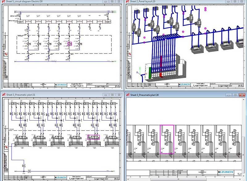 E3.fluid is an advanced solution for the hydraulic and pneumatic diagram. It permits the concurrent development of a machine, consisting of the hydraulic diagram and electronic circuits.